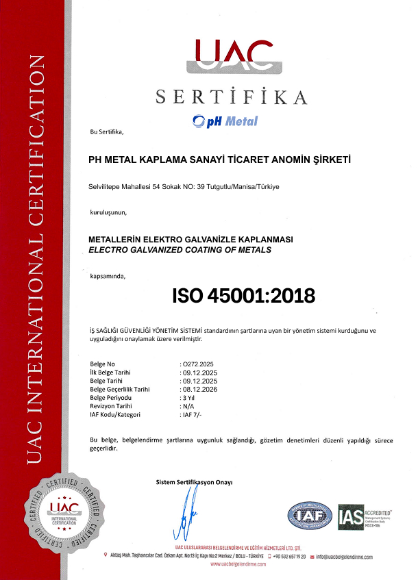 PH Metal Kaplama Sanayi Tic. A.Ş., 2021 yılında Manisa/Turgutlu’da kurulmuş, yüzey kaplama alanında kaliteli ve çevreye duyarlı çözümler sunan bir sanayi kuruluşudur.